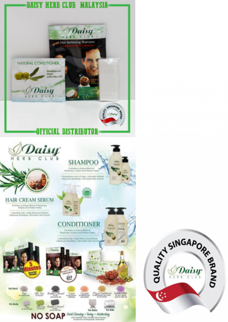 PRODUCT : DAISY HERB CLUB - Hair Dye Black/Brown Set Of 5 (Product Of Singapore) PRICE : RM28.00 per bottle CONTACT PERSON : Mr Muthukumar CONTACT NO : +6019 280 1818